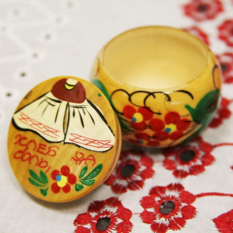 Небольшая солонка c крышкой для свадебного каравая с росписью.