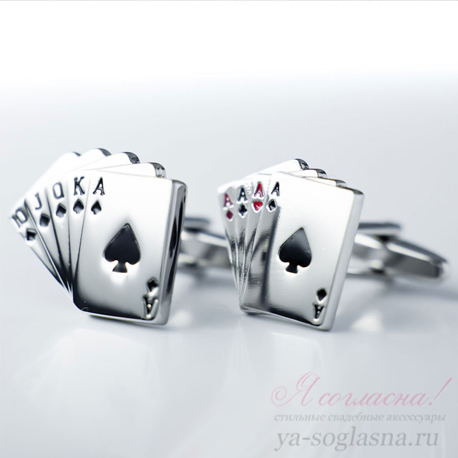 Оригинальные запонки в виде игральных карт. Отлично подойдут для свадьбы в стиле "Алиса в стране чудес", "Казино" или "Гангстеры (Чикаго)"